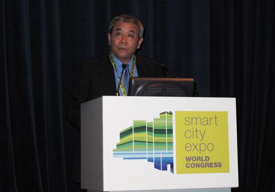 Shao Weimin, vice-mayor of Wuhan, delivers a speech to the 2012 Smart City Expo World Congress in Barcelona, Spain on Nov 15, 2012. [Photo: China Daily] |