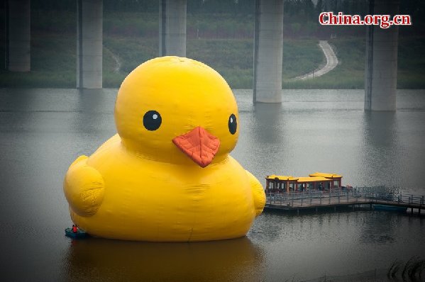 The duck will remain on the Yongding River that passes through the park until Sept. 23, then move to the Summer Palace, a famous Beijing tourist spot, where it will be on display until Oct. 26.