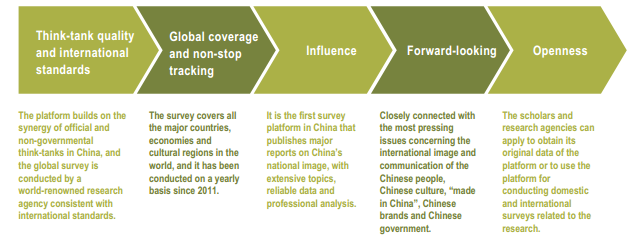 E-mail China.org.cn, February 25, 2014The platform of China's national image survey is jointly developed by the Center for International Communication Studies of China Foreign Language Publishing Administration, the Charhar Institute and Millward Brown, with the aim of gauging the opinions of the international community toward China through a scientific, objective, systemic and comprehensive survey, seeking the feedbacks of foreign nationals to the international communication campaigns on China's national image, and providing targeted, comparable and viable recommendations for boosting the effect of China's international communication activities. Since 2011, the platform of China national image survey has been conducting research on China's national image on a yearly basis and all the findings of the survey have been made public.