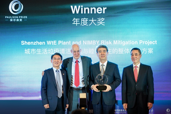 "This project is an inspired solution reducing environmental pollution and promoting clean energy development," said Henry M. Paulson Jr, chairman and founder of the Paulson Institute. "The Shenzhen Ecological Park exemplifies why we created the Paulson Prize for Sustainability. Its innovative waste-to-energy concept will make a big difference and merits both attention and replication."