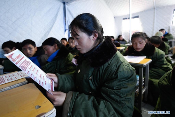 Elementary and high schools resumed classes on Monday after a 7.4 magnitude earthquake hit northwest China's Qinghai Province early Saturday.