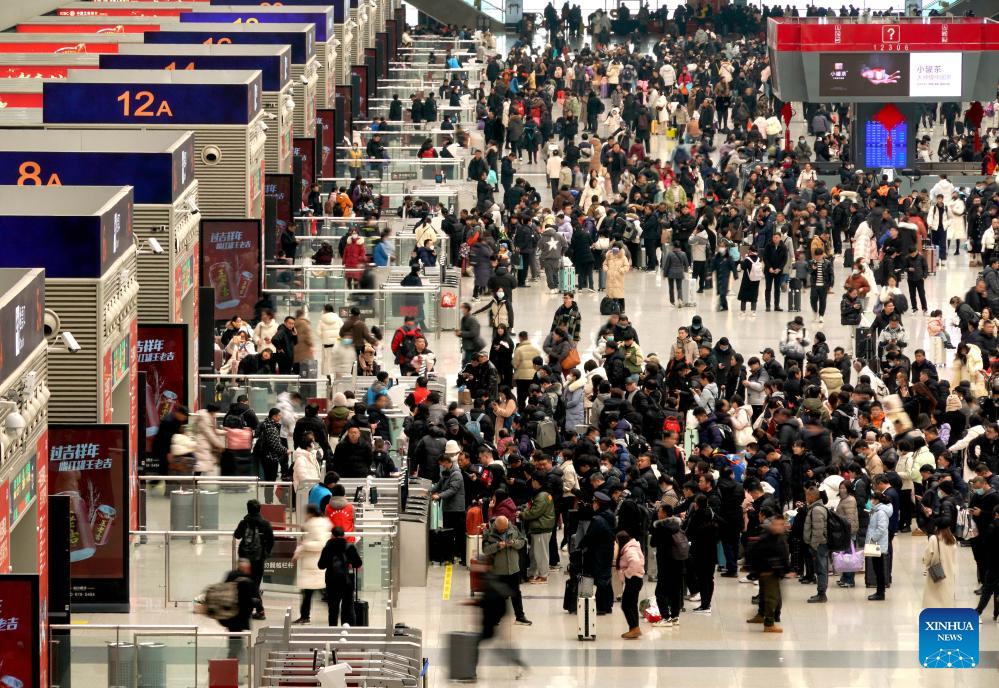Passengers wait to board their trains at Zhengzhou East Railway Station in Zhengzhou, central China's Henan Province, Jan. 26, 2024. [Photo/Xinhua]