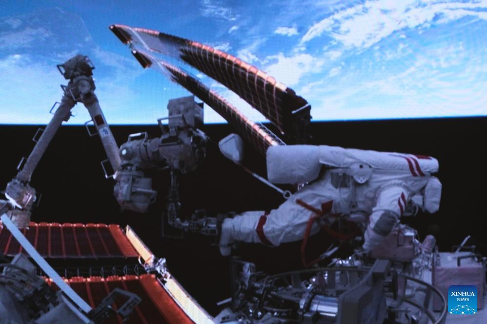 Shenzhou-18 crew members on board China's orbiting space station completed the first spacewalk of their mission at 6:58 p.m. (Beijing Time) on Tuesday, according to the China Manned Space Agency (CMSA).