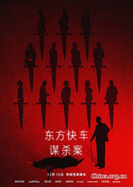中国网11月8日讯 好莱坞全明星悬疑侦探巨制《东方快车谋杀案》日前发布中国版终极海报,暗红色的背景透出一丝异样,嫌疑人剪影组成的“人身匕首”则让人联想起原著小说中的经典情节。《东方快车谋杀案》改编自“侦探小说女王”阿加莎·克里斯蒂的传世名作,有着1974年西德尼·吕美特执导的电影和ITV版电视剧珠玉在前,此次由肯尼思·布拉纳执导的新版《东方快车谋杀案》在保留原著精华的前提下做出大胆创新,从场景设计到角色设定上都加入了全新元素,用“旧瓶装新酒”的方式为影迷重新演绎这桩离奇悬案。