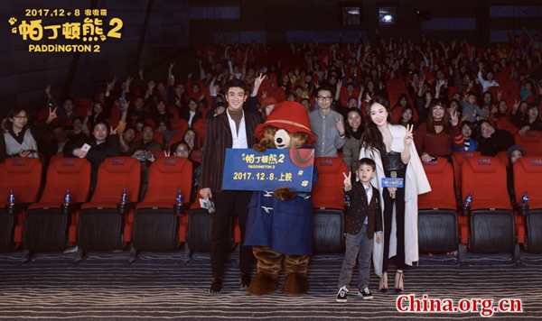 中国网12月7日讯 由本·威士肖配音、休·博内威利、休·格兰特等明星主演的喜剧冒险真人动画电影《帕丁顿熊2》即将在12月8日暖心内地银幕。影片昨日在北京举办“治愈日”首映礼,为中文配音版帕丁顿熊献声的杜江携妻儿霍思燕、嗯哼来为小熊打call。