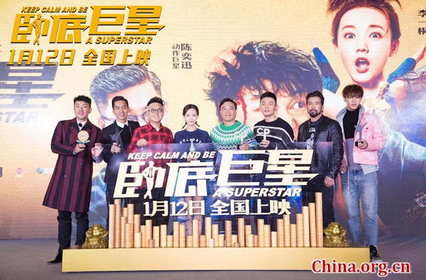 中国网1月12日讯 由谷德昭执导,陈奕迅、李荣浩、李一桐主演,崔志佳、陈国坤、刘浩龙、Chris Collins、李聪等加盟的喜剧动作电影《卧底巨星》今日在京举办“巨星的诞生”首映礼。本次首映礼以颁奖晚会的形式呈现,模式新颖另类,主创化身八卦精现场揭秘拍摄内幕,七位巨星台上欢闹互怼开启贺岁篇章,首映礼现场气氛极佳,观众爆笑连连。首映礼后,众巨星现身影厅,在红毯上展露风采的同时,还与前来观看首映的影迷们一起互动,为今天上映的电影提前预热。
