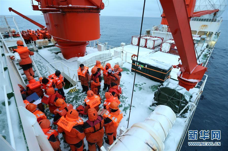 中国南极科考队举行应急消防弃船演练