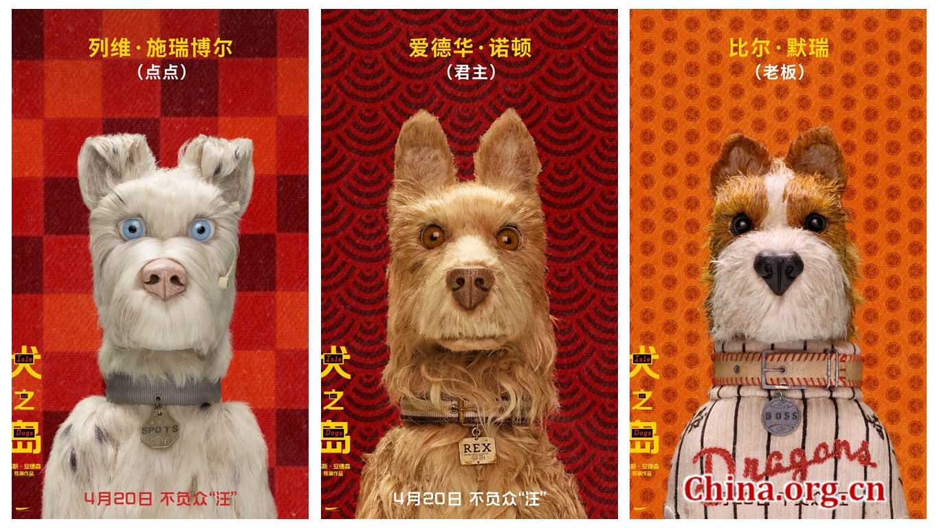 中国网3月37日讯 今日,由著名导演韦斯·安德森执导的动画电影《犬之岛》曝光众汪中文版角色海报,八只呆萌的狗狗一经亮相就吸引了广大网友和一众铲屎官的关注。海报上一同出现的豪华配音阵容更是令观众对这部将于4月20日上映的电影期待感飙升。