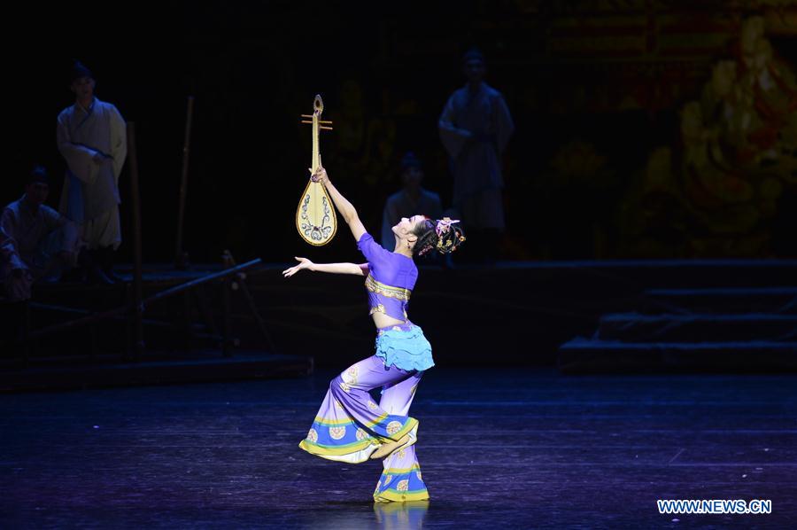 A dancer performs during the global debut of the 2018 edition of the dance drama "Silk Road" in Dunhuang, northwest China's Gansu Province, April 30, 2018. (Xinhua/Li Xiao)