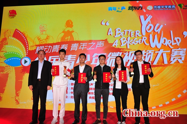中国网5月9日讯 5月7日,“耀动青春·青年之声”全国青少年微视频大赛颁奖典礼暨第二届大赛启动仪式在北京电影学院举行。来自全国各地的近百名获奖选手与剧组成员欢聚一堂,斩获28项大奖。新东方教育科技集团董事长俞敏洪特邀出席活动,与获奖团队主创代表共赴红毯,表示新东方将举全力帮助、支持青少年无边界成长,鼓励青少年用微视频抓住人心,记录自我成长与社会现状,以正能量为风向标,用镜头展现个人与新时代的青春风貌,推动社会进步。