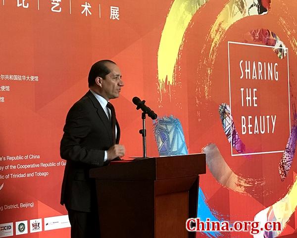 5月14日,2018第五届拉美艺术季“异彩共生 -- 拉美及加勒比艺术展”在京开幕,来自拉美及加勒比地区的七国艺术家作品在民族文化宫正式展出。