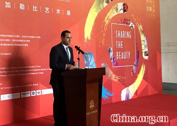 5月14日,2018第五届拉美艺术季“异彩共生 -- 拉美及加勒比艺术展”在京开幕,来自拉美及加勒比地区的七国艺术家作品在民族文化宫正式展出。