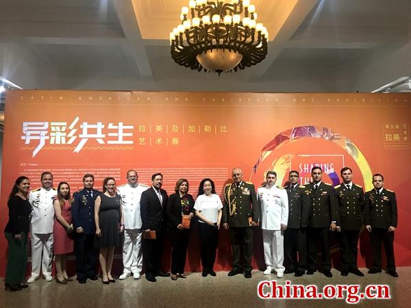 嘉宾出席2018第五届拉美艺术季“异彩共生 -- 拉美及加勒比艺术展”开幕式。【中国网 周静 摄】