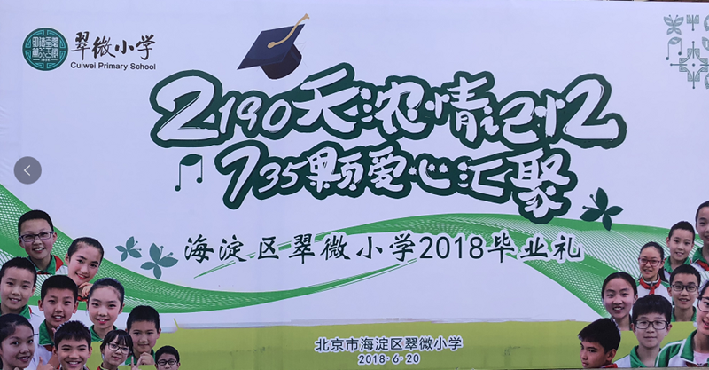 中国网讯 为了让孩子们回顾翠微小学生活的点点滴滴,体验即将毕业离校时的仪式感,2018年6月20日18:30,海淀区翠微小学本校区隆重举办“2190天浓情记忆 735颗爱心汇聚”暨 2018届六年级学生毕业典礼,这也是翠微小学举办的第四届“翠·微之夜”。当晚,1600余人齐聚翠微小学共同见证这一重要的时刻。