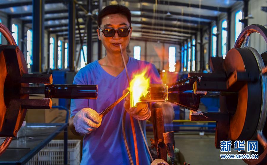 A worker makes art glass product at a glass product company in Fucheng County, north China's Hebei Province, June 23, 2018. The Fucheng County has in recent years vigorously developed art glass industries and promoted its exports by seizing opportunities brought by the Belt and Road Initiative. At present, art glass produced by the county have been exported to 16 countries and regions, with some 1,000 local people employed. (Xinhua/Li Xiaoguo)