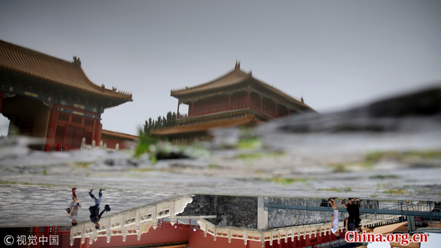 A mirror image of the Forbidden City is reflected on the water in Beijing on July 11, after a heavy rainfall. [Photo/VCG]