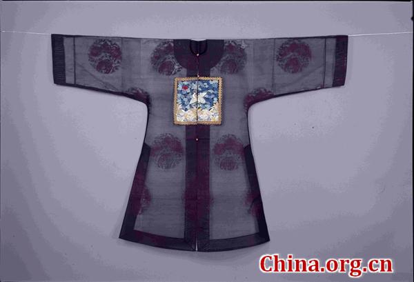 青色纳纱云鹤纹补单褂。[图片 首都博物馆]