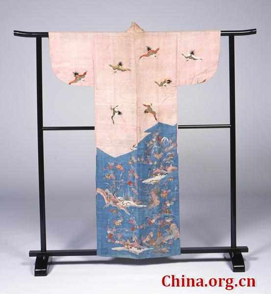 分染麻质水边风景鹤纹单衣。[图片 首都博物馆]