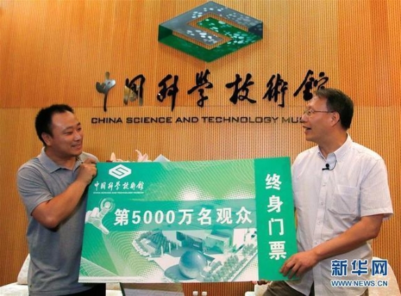日前,中国科技馆迎来第5000万名观众,中国科协党组成员、中国科技馆馆长殷皓向这位幸运观众赠送了终身门票和科创礼品。