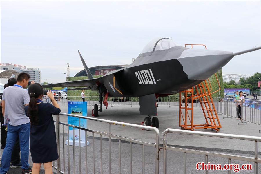 9月6日,人们在为绵阳科博会上展出的“歼-31”战斗机拍照。(中国网 郑成琼摄)