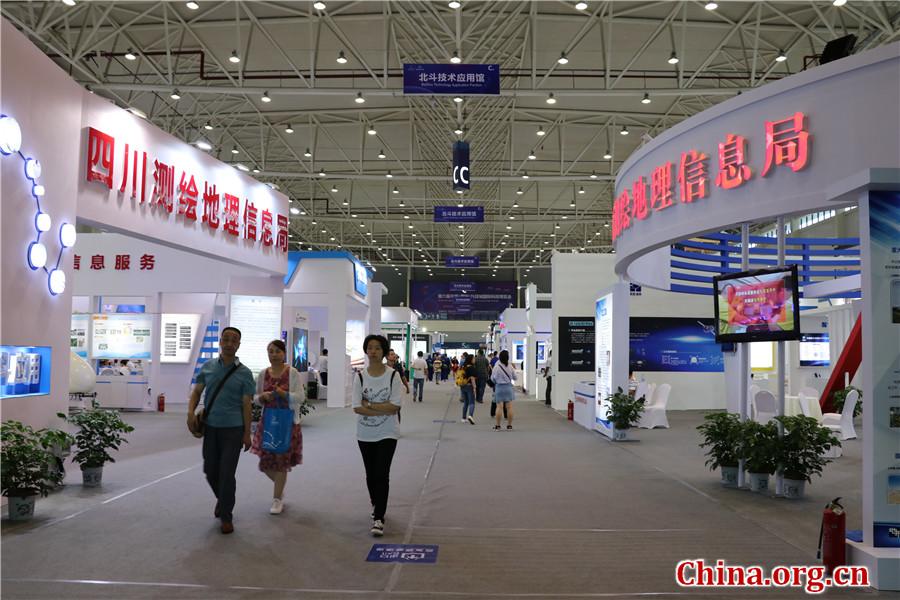 9月6日,人们在绵阳科博会北斗技术应用馆内参观。(中国网 郑成琼摄)