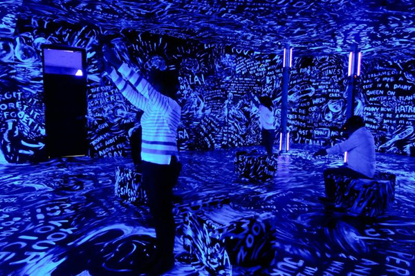 作为最吸引人的视觉创意,《沙中房间》使用粉笔字形式贯穿作品始终。黄心健表示,粉笔写在黑板上虽然可以被擦掉,但永远都擦不干净,这就好比逝去的记忆残留在人的意识或者潜意识里,VR技术的应用能让每个来到这里的人像在梦里飞行一样,感受流动的记忆和故事。
