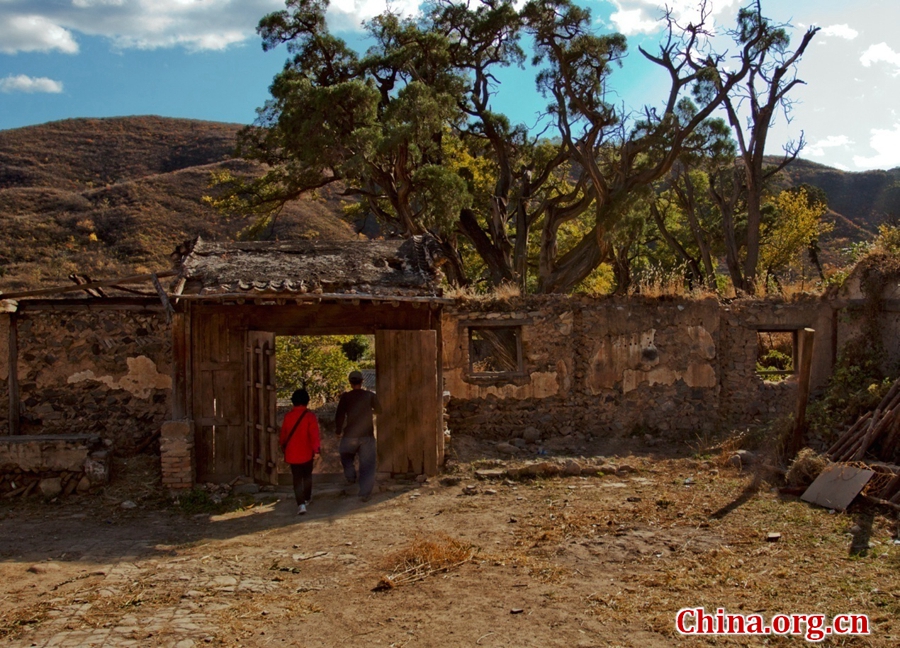 2011年时,站在破败的大殿台阶上看庙门外的情形。