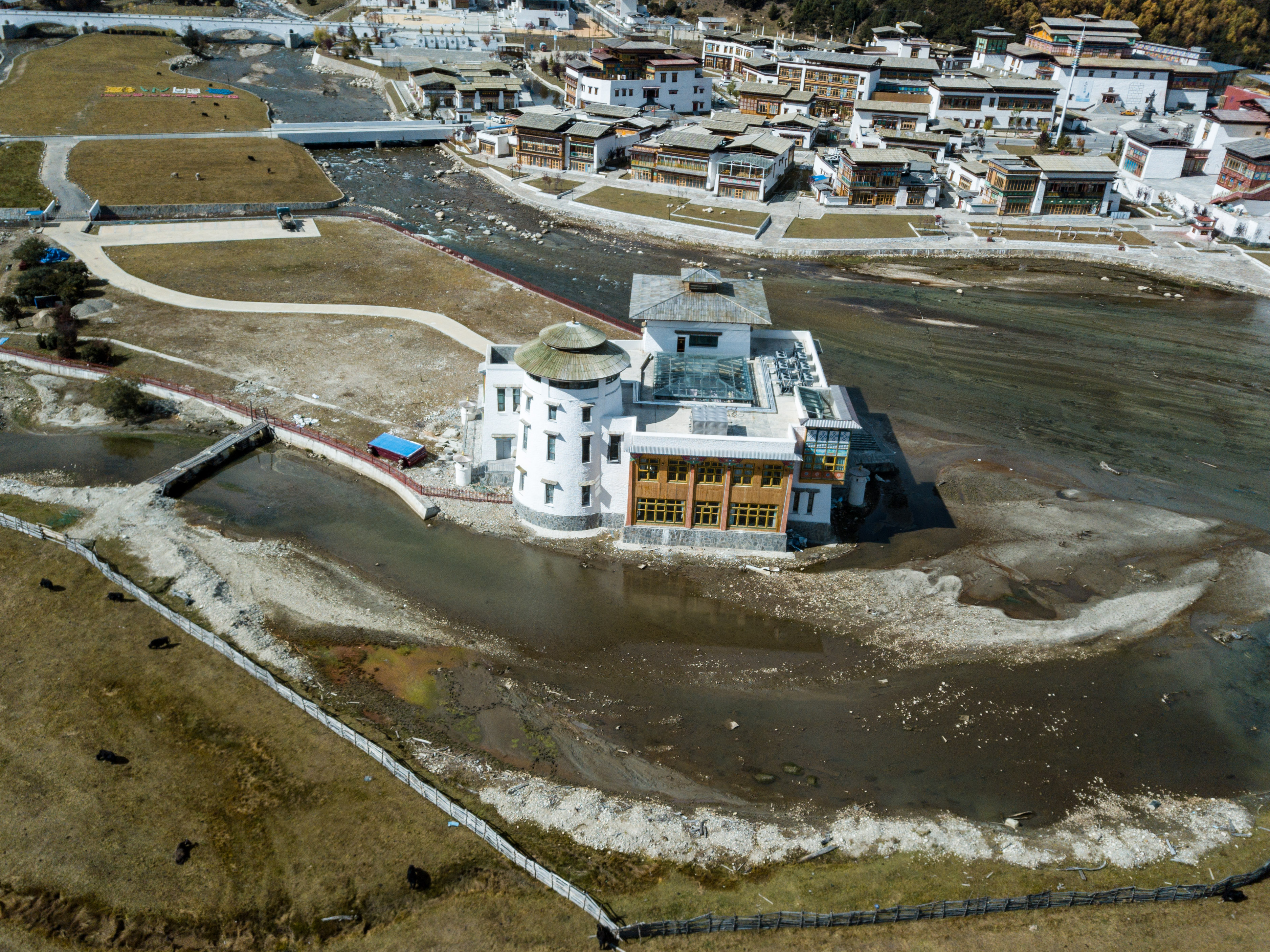 枕水而居的鲁朗国际旅游小镇。【中国网孙韬 摄】