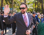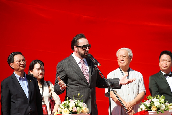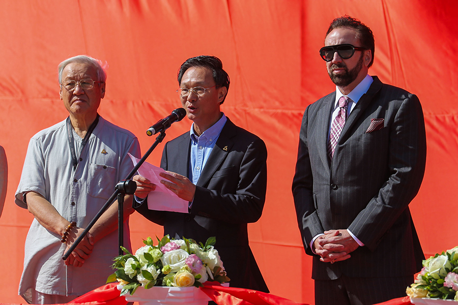 剪彩仪式上,好莱坞演员尼古拉斯·凯奇上台致辞,祝贺电影博物馆落成,表达了此次参加海南岛国际电影节的感受,同时寄冀未来与中国影人合作。