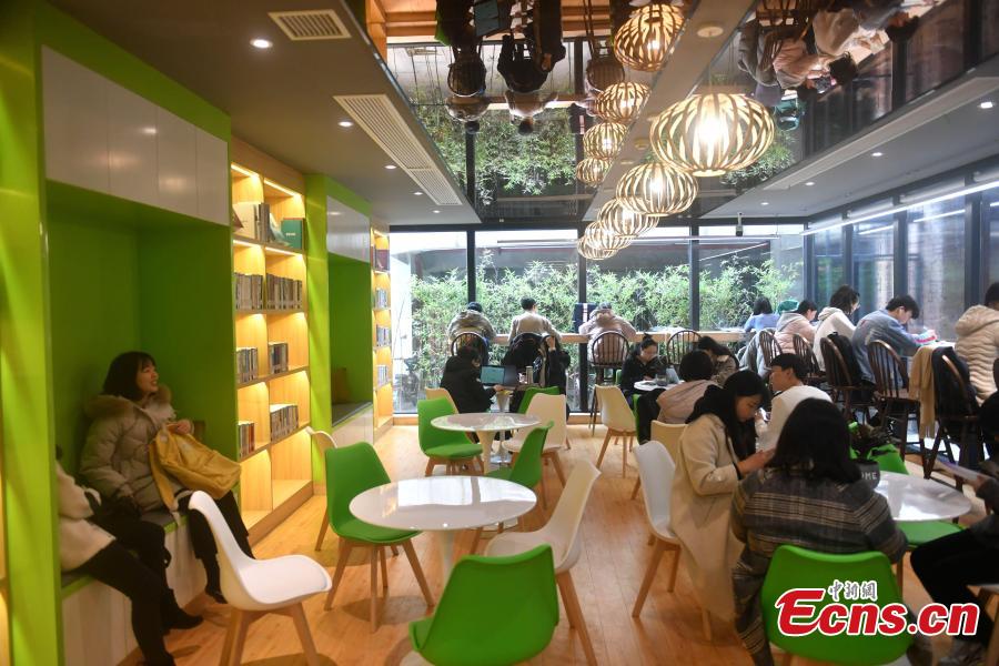 The 24-hour study room in Qishan campus of Fujian Normal University in Fuzhou City, East China's Fujian Province, Feb. 27, 2019. The room that never closes includes sleeping cabins and a space management system. (Photo: China News Service/Lyu Ming)