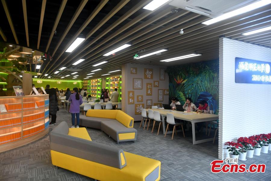 2月27日,福建师范大学旗山校区的24小时书房正式开放,吸引师生体验。该书房内设有休闲阅览区、电子阅览区、睡眠舱、自助借还区、图书展示区、写作区和各类专架专柜等。书房全天候开放,读者凭一卡通即可进入阅览、休闲、借还图书。[中新社 吕明 摄]