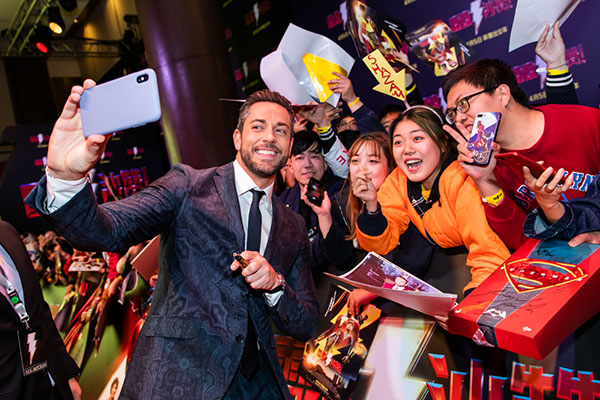 可能也没有谁能比扎克瑞·莱维更能展现沙赞的特质了,无论在电影里,还是在现实生活中。3月25日,他首次来中国参加首映礼,就各种搞怪耍宝,在红毯和舞台上祭出各种欢脱的表情。他可以戴上闪光头饰和粉丝合影,也可以拿着披风扮猫王。首映礼活动结束后,他还去三里屯体验潮流生活,网红奶茶、漫画店、抓娃娃机、KTV和火锅店一样不落。