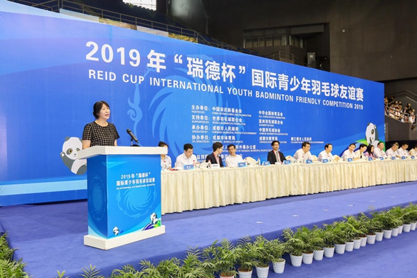 中国网7月31日讯 7月30日,由中国宋庆龄基金会、中华全国体育总会共同主办的2019年“瑞德杯”国际青少年羽毛球友谊赛在成都都江堰开幕,中国宋庆龄基金会主席王家瑞出席活动。