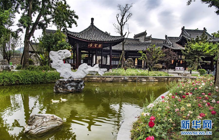5月13日拍摄的诸葛街水街一景。近日,陕西省汉中市勉县武侯镇的诸葛街对外开放运营。诸葛街景区由汉式园林建筑及楼台水榭、亭廊阶石、木质亲水栈道等20多处景观组成,集旅游休闲、特色民宿、地方美食等为一体,服务游客的同时为760多人提供了就业。[新华社记者 陶明 摄]