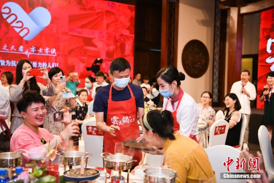Jack Ma, founder of Alibaba Group, invites 66 medical workers to a hot pot restaurant in Hefei, Anhui Province on June, 6, 2020. These Anhui medical workers had helped fight the COVID-19 in Hubei Province. (Photo: China News Service)