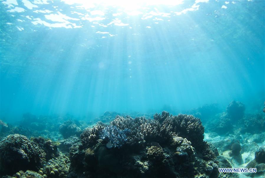 Photo taken on April 29, 2020 shows corals at a marine ranch in the sea area of Wuzhizhou Island in Sanya, south China's Hainan Province. The marine ranch in the sea area of Wuzhizhou Island in Sanya is China's first tropical marine ranch. In recent years, the marine ranch has successively carried out artificial reef laying, marine environment restoration and coral transplantation, gradually promoting the protection and restoration of the marine ecosystem. By the end of 2019, a total of 1,526 artificial fishing reefs of various types, 21 ship reefs and a batch of volcanic rock reefs have been laid in the marine ranch off Wuzhizhou Island. (Xinhua/Yang Guanyu)