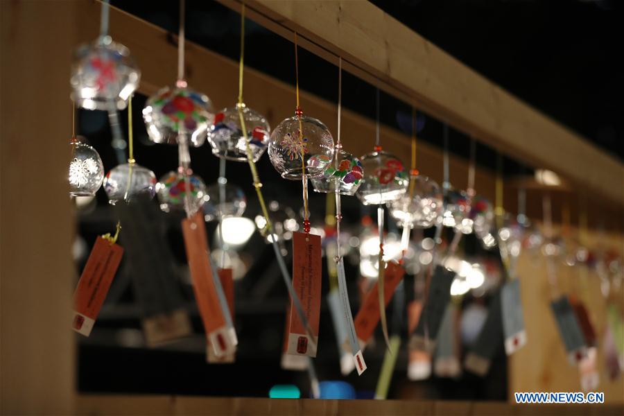 Wind chimes are seen at an exhibition near the Tokyo Station in Tokyo, Japan, Aug. 26, 2020. Over 2,000 wind chimes are on display during the exhibition that goes from Aug. 21 to Aug. 28. (Xinhua/Du Xiaoyi)