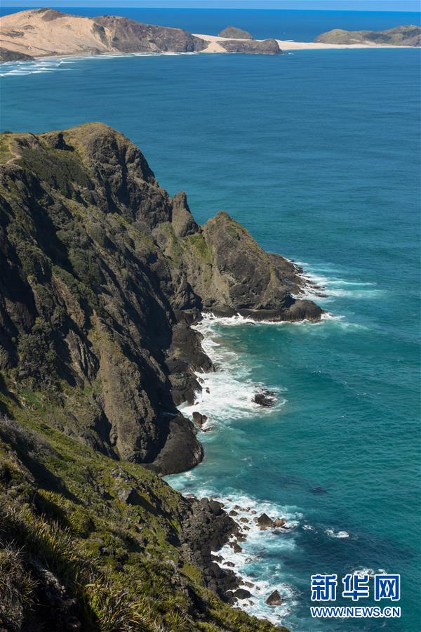 这是10月7日在新西兰雷恩加角拍摄的海岸。雷恩加角位于新西兰北岛最北端,是贯穿新西兰全境的1号公路的起点,也是塔斯曼海和太平洋的交汇处。[新华社记者 郭磊 摄]
