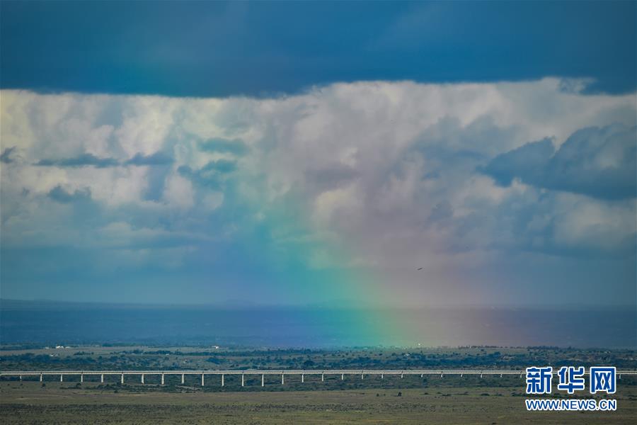 这是2020年4月29日在肯尼亚内罗毕拍摄的彩虹下的蒙内铁路。非洲面积约3000万平方公里,是世界第二大陆,也是人类文明的发源地。从地中海到好望角,这片广袤无垠的土地上遍布独特的自然景观和人文风情。“非”常之美让来自世界各地的人们流连忘返。[新华社记者 李琰 摄]