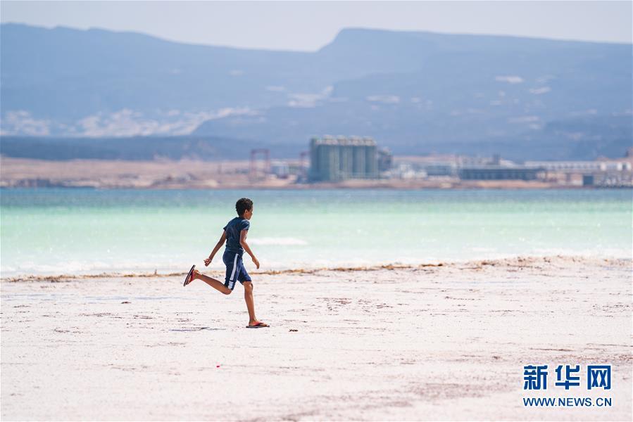 A boy runs by the Lake Assal in Djibouti, Jan. 10, 2020. (Xinhua/Xie Han)