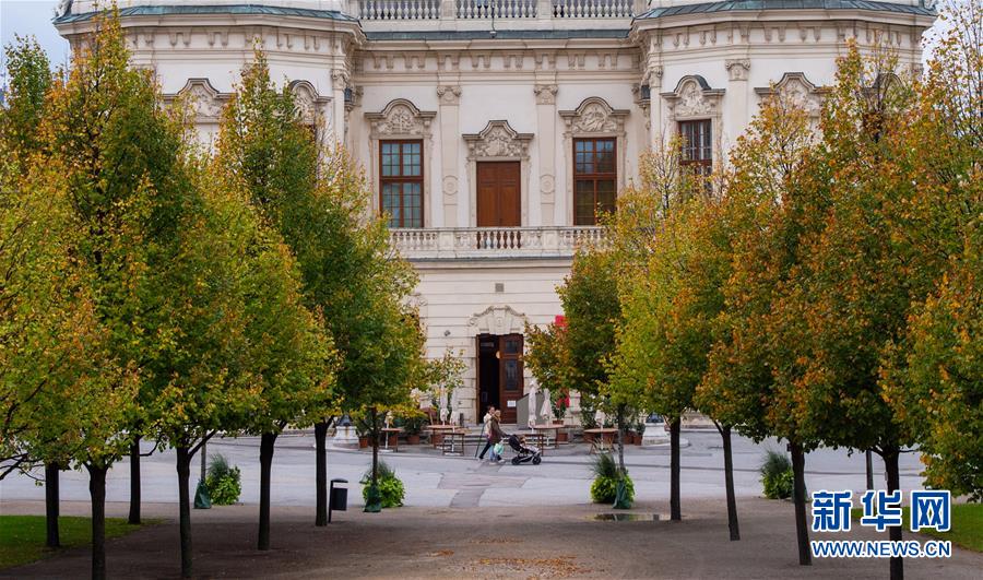 10月12日,市民在奥地利维也纳美景宫花园内行走。[新华社记者 郭晨 摄]
