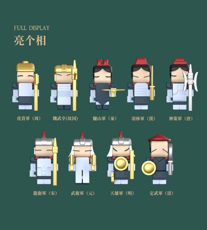 国家博物馆集中展示了中国历代智慧结晶。国博衍艺团队一直希望把中国历史及传统文化,用年轻人的方式传播和推广。一次偶然的机会,国博将清泽潮玩和巧合榫卯牵在了一起,经过数次讨论和设计,最终将国家博物馆的古代中国兵俑以榫卯积木的方式呈现出来。这套兵俑的设计灵感,源自国家博物馆的古代兵俑,兵器,盔甲等文物展品,结合Q版设计,以榫卯拼接积木的形式,灵活鲜活的展示了古代将士英姿。