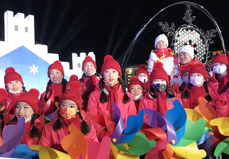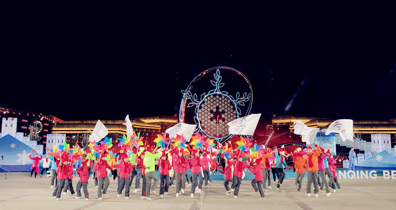 当奥运圣火被点燃那一刻,来自延庆服务冬奥各领域的职工和代表伴随着《请到长城来滑雪》《一起向未来》等冬奥音乐欢快起舞,表达着延庆妫川儿女对北京冬奥会的美好祝愿。