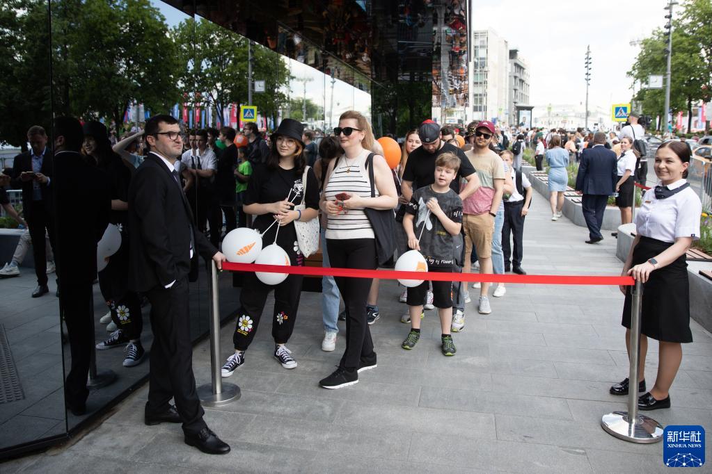 6月12日,人们在俄罗斯首都莫斯科普希金广场的“只有美味”连锁餐厅外排队等待用餐。位于莫斯科市中心普希金广场的原麦当劳餐厅12日重新开业,正式更名为“只有美味”。这里曾经是麦当劳30多年前进入俄罗斯市场后开设的首家门店。当天重新开业的共有莫斯科和莫斯科州的15家原麦当劳餐厅。3月14日,麦当劳宣布暂停在俄业务,称原因是出现“运营、技术和物流困难”。5月16日,这家在俄罗斯餐饮市场占据7%份额的美国快餐连锁巨头宣布退出俄罗斯。[新华社记者 白雪骐 摄]