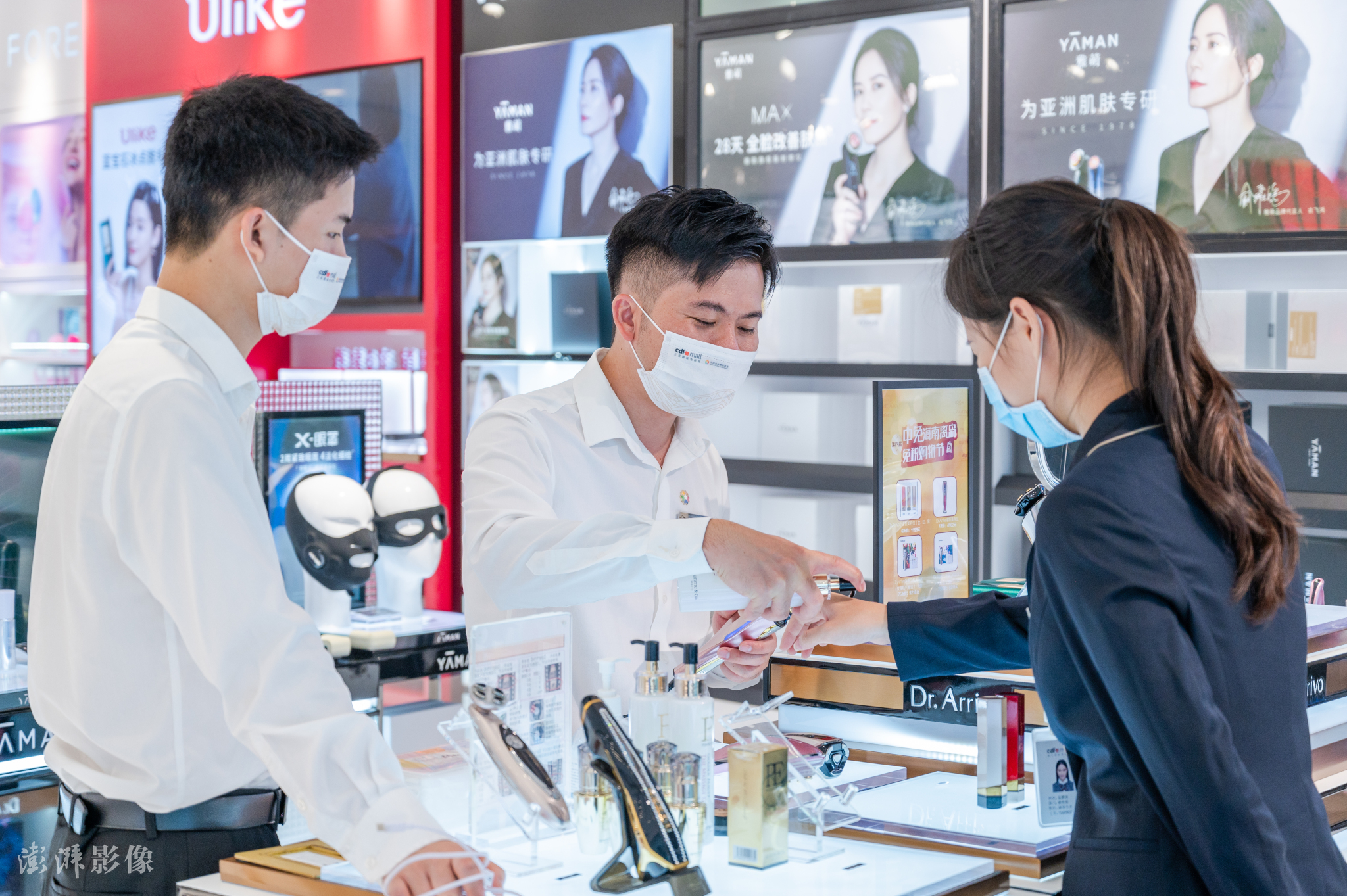 2022年9月21日,海南三亚,三亚海棠湾国际免税城恢复营业首日,顾客在现场购买商品。据悉,国际免税城在长达一月的沉寂后,终于迎来了第一次营业,大量的顾客纷纷有序的进入免税店挑选自己心仪的免税物品。[澎湃影像/IC Photo]