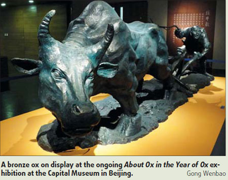 In Beijing, visitors can also see vivid oxen depicted in porcelain, paper, bronze ware, jade and root sculpture at the Capital Museum and National Art Museum of China during the Spring Festival season.