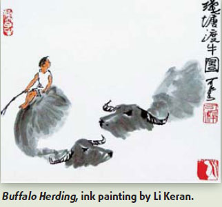 Li drew buffaloes and buffalo boys in a simple manner. It seems that he not only wanted beautiful images but also used them to symbolize good temperament and the spirit of Chinese people.
