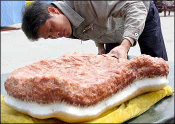 An 80,000 yuan worth of stone attracts many visitors as it seems like a piece of huge meat in Suzhou,