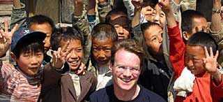 Dashan (center) spends some time with the kids when he was in Dali, Yunnan Province, for a tourism festival in April 2003. [dashan.com.cn]