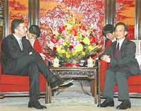 Chinese Premier Wen Jiabao met in Beijing Monday with Montenegrin Prime Minister Milo Djukanovic of Serbia and Montenegro, exchanging views on China's ties with Serbia and Montenegro and its cooperation with Montenegro.
